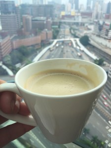 Running on three hours of sleep from being jet lagged, my cousin and I forced ourselves out of bed. We’ve been planning on running the Great Wall of China marathon in Beijing. With the race six days away, we started to get ready for a morning run before we let the city of Hong Kong consume us. As I got ready, I found it appropriate to make a cup of coffee to enjoy while looking outside our window.