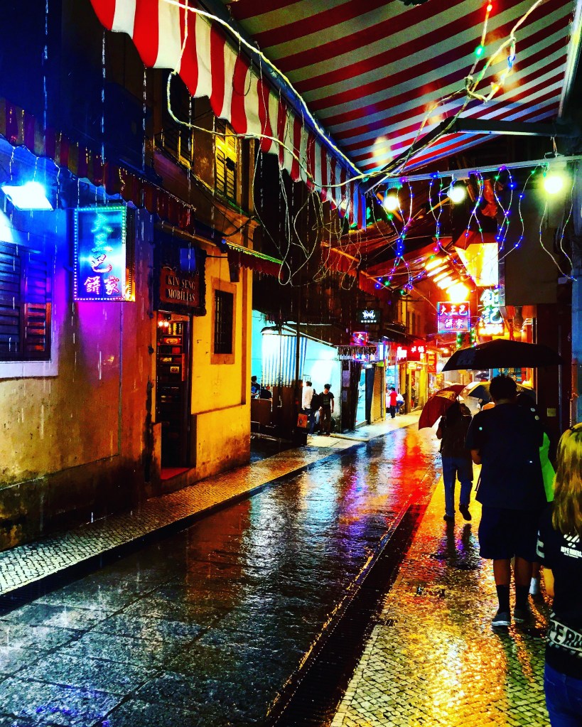 We got into a taxi and I pointed to a spot on the map, “Lan Kwai Fong.” The driver started to drive and the rain sprinkled. After experiencing the rain at the peak, I was ready for it to shower. He pulled up on the side of he road and pointed us into a direction…